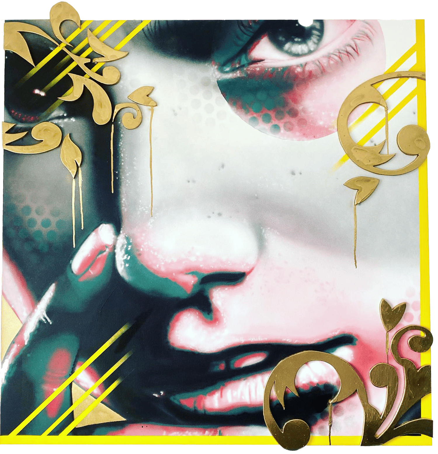 Date: 09/2023. Taille/Size: 100x100 Technique: Aérosol Support: Châssis coton 3D + bois MDF Encadrement/Frame: non fourni/ none Toutes les toiles sont signées et livrées avec un certificat d'authenticité.